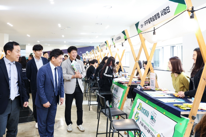 [DU 채용 우수기업 취업박람회 총장님 격려사진] "현직자 선배와 함께하는" DU 채용 우수기업 취업박람회 일학습병행사업단(4년제대 재학형·첨단) 홍보부스 운영 우리 대학은 재학생과 졸업생의 취업 역량 강화를 위해 10월 23일과 24일 본관 1층 성산라운지와 17층 스카이라운지에서 개최된 ‘2025학년도 DU 채용 우수기업 취업박람회’에 참여하여 일학습병행사업 홍보부스를 운영하였다. 본 행사는 우리 대학 취업지원팀과 대학일자리플러스센터의 주관으로, 채용 우수기업과 현직자, 졸업생 멘토를 초청해 실질적인 취업 정보와 진로 컨설팅을 제공함으로써 학생들의 사회 진출 역량을 높이기 위해 마련됐다. 이번 박람회는 우수기업 초청관, 동문 멘토링·직무컨설팅관, 진로·취업상담관, 반도체 채용설명회관, 이벤트관 등 총 30여 개 부스로 운영되었다. ‘DU 채용분야 우수기업 초청관’에는 재학생·졸업생을 대상으로 채용 수요가 높은 반도체, IT, 공공기관 등 우수기관 10여 곳이 참여하여 현장 채용 상담과 인턴·자격증 정보, 채용 절차 안내 등을 제공했다. 이번 박람회를 통해 일학습병행사업단(4년제대 재학형·첨단)은 홍보부스를 운영하여 취업을 준비하거나 일학습병행사업에 관심있는 학생들을 대상으로 일학습병행 사업 홍보 및 참여 상담을 진행하였다. 정인준 산학협력단 일학습병행사업단장은 “이번 취업박람회를 통해 우리 대학 학생들에게 일학습병행사업을 적극적으로 소개하고 홍보하였으며, 우리 대학 학생들이 현직자와의 만남을 통해 취업에 대한 자신감과 방향성을 얻고, 일학습병행사업을 통해 기업과 실질적인 매칭이 이루어질 수 있도록 적극 노력하겠다."고 말했다. |
